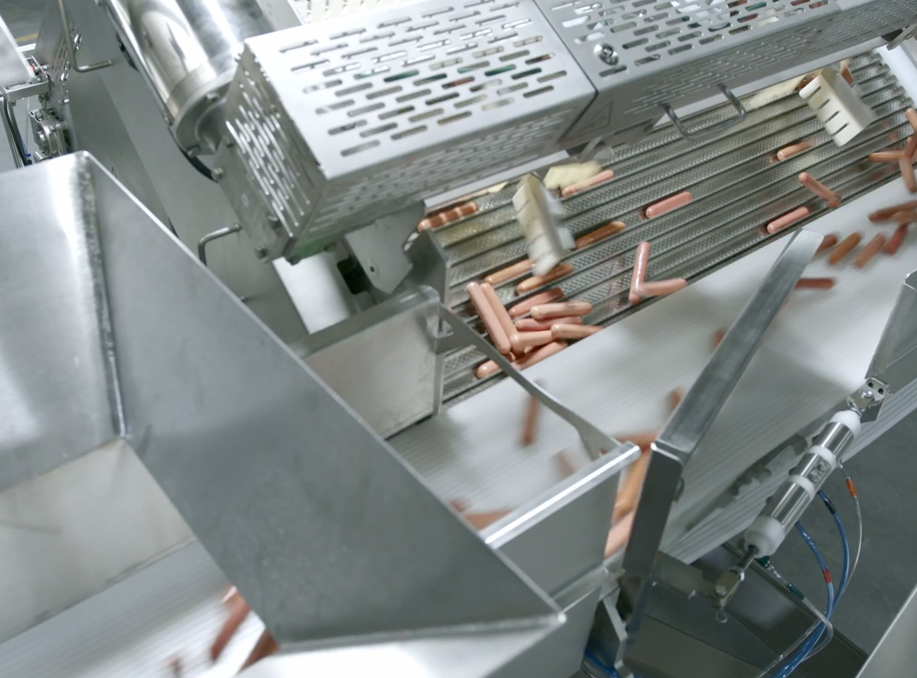 The CS-1800 is able to load products that are cooked or chilled & can handle skinless or skin-on products. This reliable machine processes products from 12mm to 32mm in diameter & from 76mm (3 inches) to 300mm (12 inches) in length at speeds up to 1,800 pieces per minute.